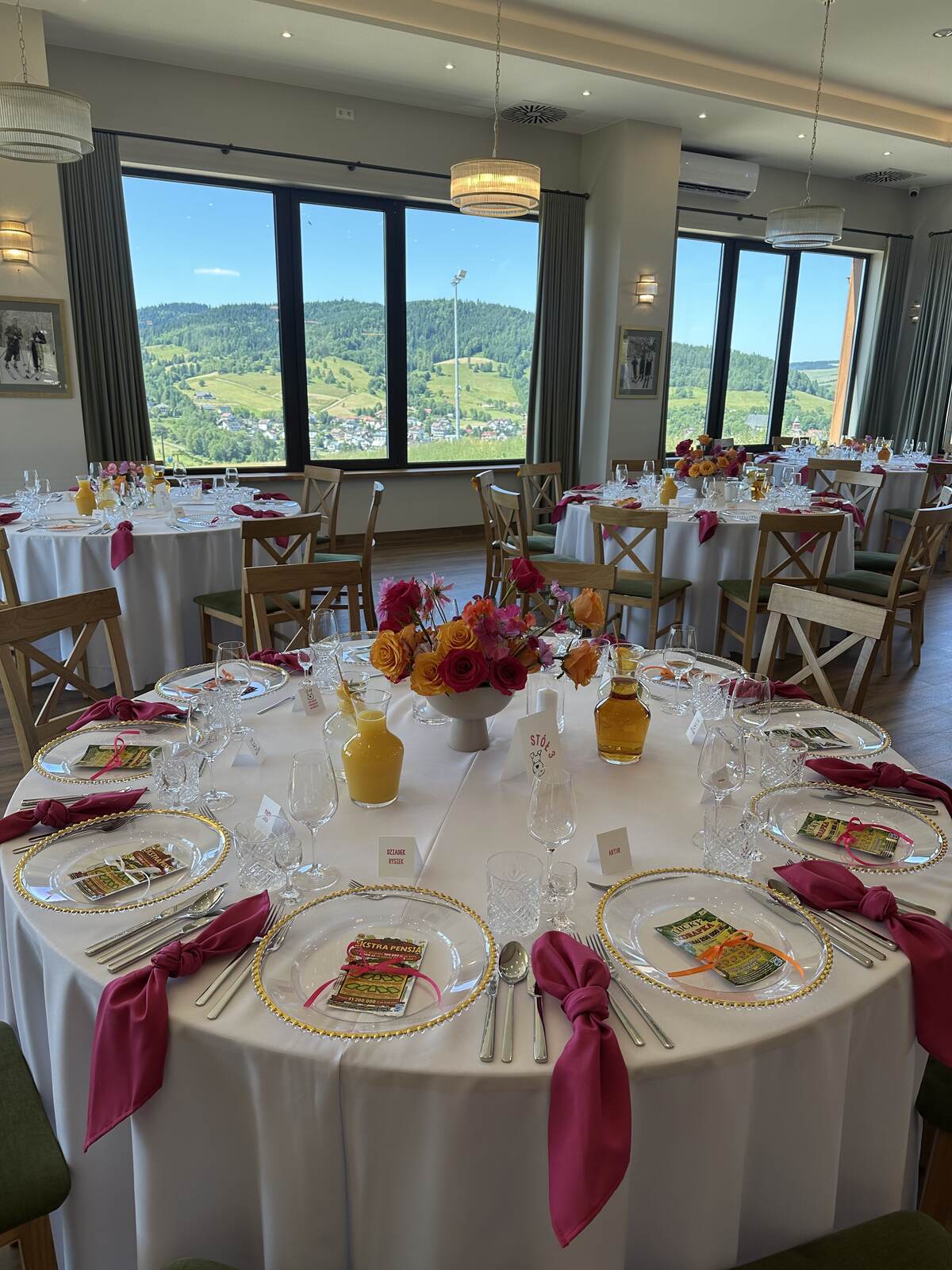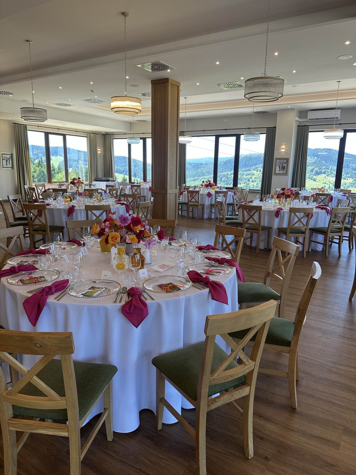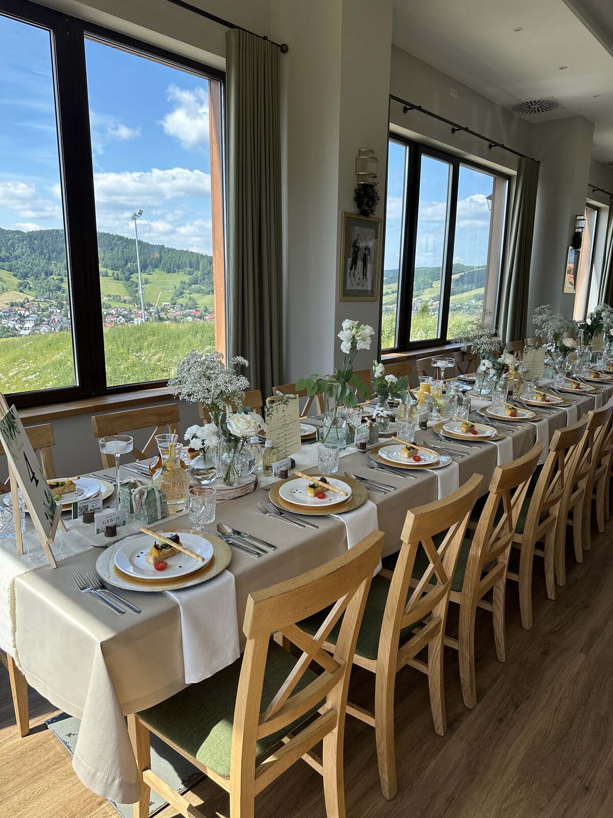 Do dyspozycji naszych Gości oddajemy przestronną salę pozwalającą na organizację uroczystości do 200 osób. Niewątpliwym atutem sali są ogromne przeszklenia, z których rozpościera się niepowtarzalny widok na panoramę Tylicza oraz pobliskie szczyty.