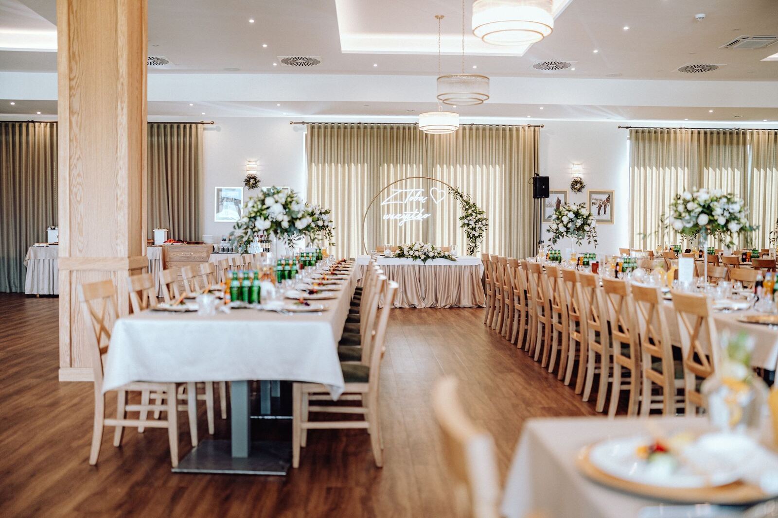 Zrównoważony wystrój Restauracji, wytonowane kolory oraz naturalne materiały sprawią, że każdy z Gości będzie czuł się w jej wnętrzach komfortowo. Unikalny charakter nadają sali stylowe żyrandole i klimatyczne oświetlenie.